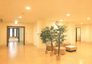 天井高4.5メートルのエントランスホールは、床面は御影石、壁面は大理石で覆われています。