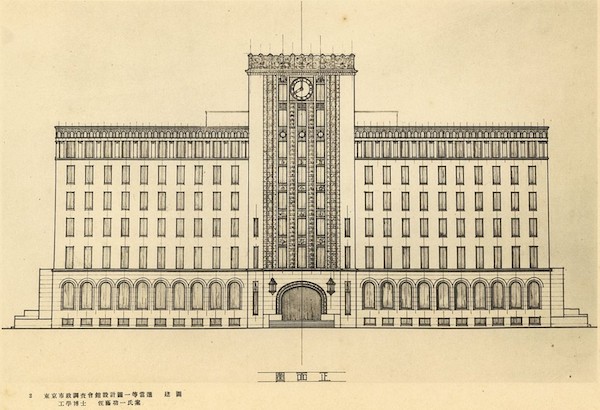 佐藤功一は、設計者に選定されるとすぐさま実施設計に取り掛かりましたが、1923年9月に関東大震災が発生します。また、建築認可がすぐに下りなかったこともあり、着工は遅れましたが、その間に佐藤功一の当初の市政会館設計案は大きく見直されました。