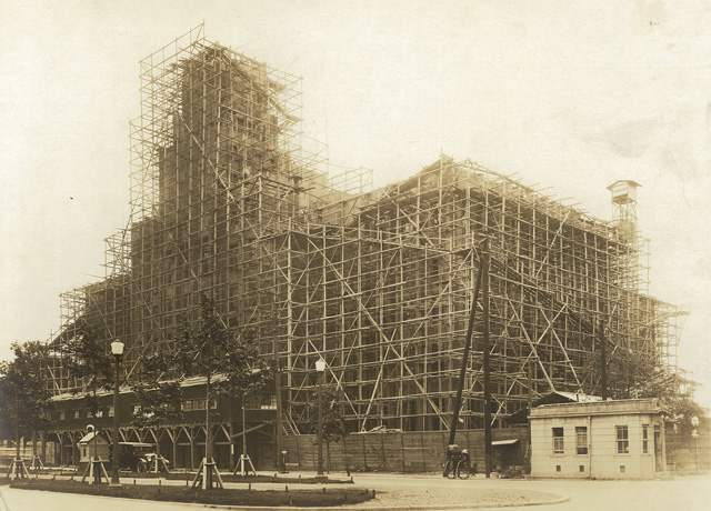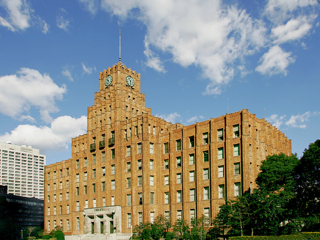 市政会館は、1929(昭和4)年10月19日、日比谷公園の南東の一角に日比谷公会堂とともに誕生しました。塔時計と茶褐色のタイル張りの外壁をもつクラシックな建物は、日比谷のシンボルとして親しまれています。