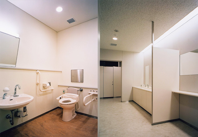 全館トイレにウォシュレットとエアータオル、女子トイレにはパウダーコーナーを設置しています。
