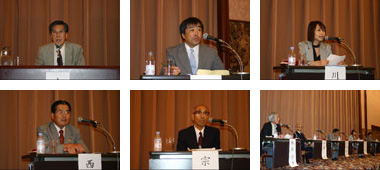北沢 栄氏 (ジャーナリスト・東北公益文科大学大学院教授) 君島 一宇氏 (自治労本部 副中央執行委員長) 関 淳一氏 (大阪市長) 山崎 重孝氏 (総務省 合併推進課長) |